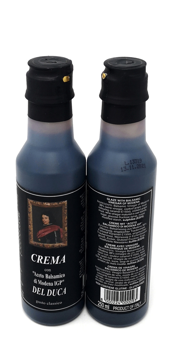 Balsamico CremaGrosoli Questa crema è molto viscosa e pastosa ed ha un aroma dolce e fruttato che si abbina perfettamente per condire e guarnire ogni tipo di pietanza. 22,00 €/l Dimensione: 250 ml Prezzo: 5,50 € Aggiungi al carrello continua lo shopping condividi su: