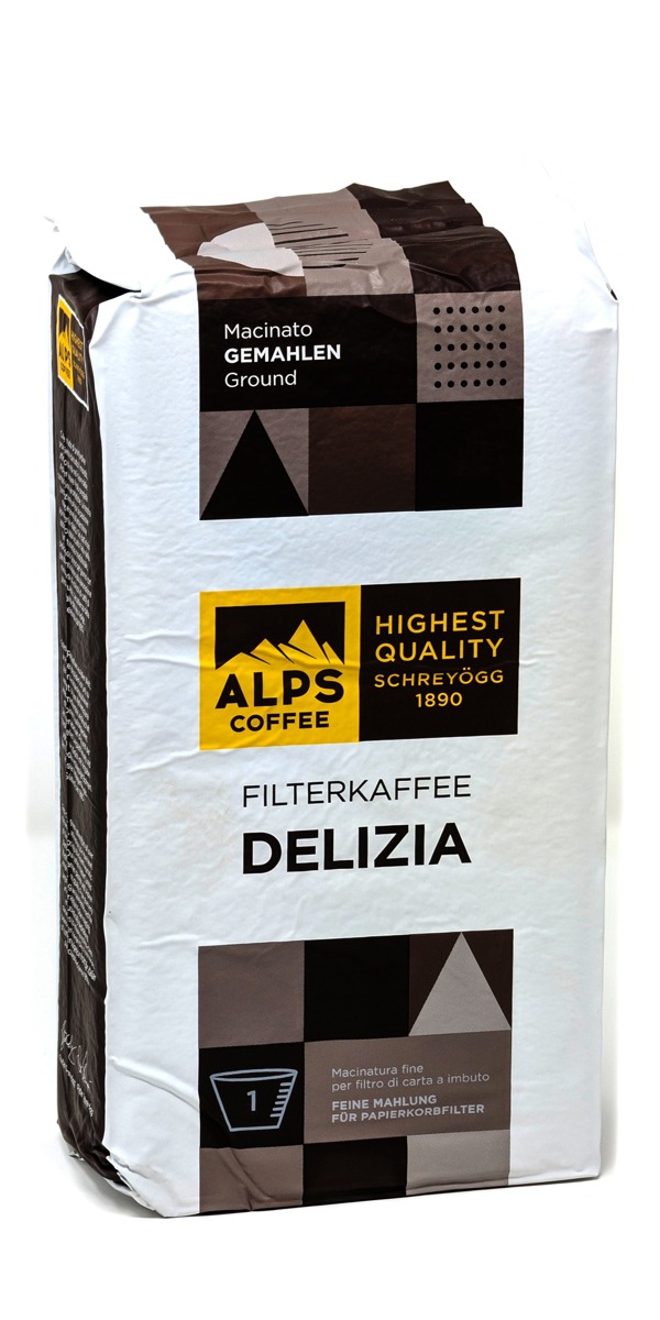 Il caffè 'Delizia' di Alps-Coffee si distingue per la tradizionale torrefazione italiana che dura dai 18 ai 22 minuti. Questa lenta torrefazione genera meno tannini nel caffè, rendendolo molto più delicato per lo stomaco.