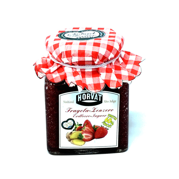 Ingredienti: Fragole, zenzero, zucchero, succo concentrato di sambuco, gelificante: pectina di mela.