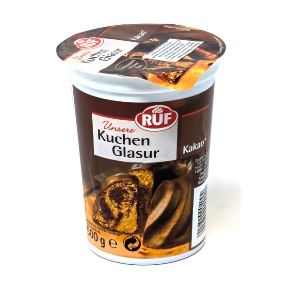 La nostra glassa al cacao RUF è particolarmente facile da utilizzare e ricopre ogni dolce con uno strato deliziosamente cioccolatoso. Grazie al pratico contenitore da 500 g, può essere sciolta facilmente a bagnomaria o nel microonde.