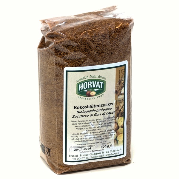 Lo zucchero di fiori di cocco è un vero e proprio tuttofare in cucina. È perfetto per la pasticceria, i dessert, il tè, il caffè, i frullati o per completare condimenti per insalate e cocktail. Il nostro zucchero di fiori di cocco biologico convince anche per la migliore qualità biologica, non raffinato, con una nota di caramello naturale ed è adatto anche a una dieta vegana. Lo zucchero di fiori di cocco è stato coltivato da produttori del commercio equo e solidale, certificato e commercializzato secondo gli standard del commercio equo e solidale.