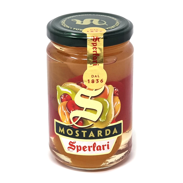 Specialità di origine italiana, la cui storia riporta indietro nei secoli ai banchetti rinascimentali presso le corti di principi e papi, la mostarda è forse la più sontuosa presentazione della frutta: uno sfavillio di colori che accompagna il gusto pieno di ogni frutto. Un piacevole contrasto tra il dolce ed il piccante: la frutta, che incontra lo zucchero e si accende di senape, dà origine ad un perfetto equilibrio di sapori. D' acompagnare con formaggi, carne, pesce, salumi, insalate...