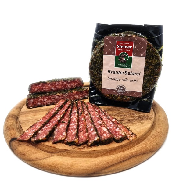 Salami con erbe Macc. Steiner Medaglioni di salame alle erbe: Avvolti in erbe aromatiche, ideali per gli amanti dei sapori freschi. 32,00 €/kg Dimensione: min. 150 g Prezzo: 4,80 € Aggiungi al carrello continua lo shopping condividi su: