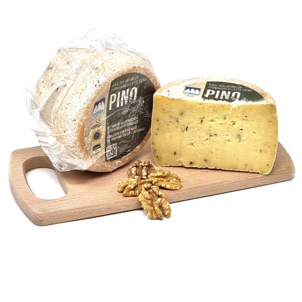 Il formaggio “Pino” viene prodotto dalla Sennerei Drei Zinnen nell’Alta Pusteria (Toblach, Alto Adige). È ottenuto esclusivamente con latte da fieno g.t.S. Il Pino e un formaggio dolce e delicato da taglio con consistenza morbida ed e delicato al gusto di pino mugo . La crosta é giovane e morbida.