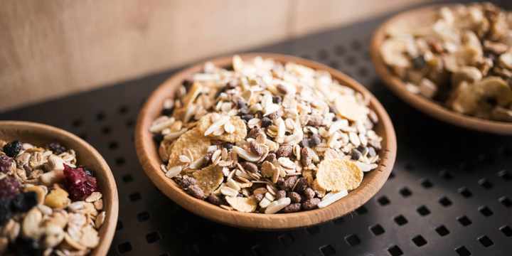 Il muesli è una miscela di fiocchi di cereali, frutta essiccata,frutta disidratata e semi oleosi. Alcuni cucchiai di muesli con un po’ di latte o yogurt ti permettono di fare una colazione ricca, nutriente ed equilibrata. La colazione del mattino è il pasto più importante della giornata.Il muesli infatti è ricco di fibre e grassi insaturi; i fiocchi inoltre sono un’ottima fonte di energia ed hanno un basso indice glicemico.