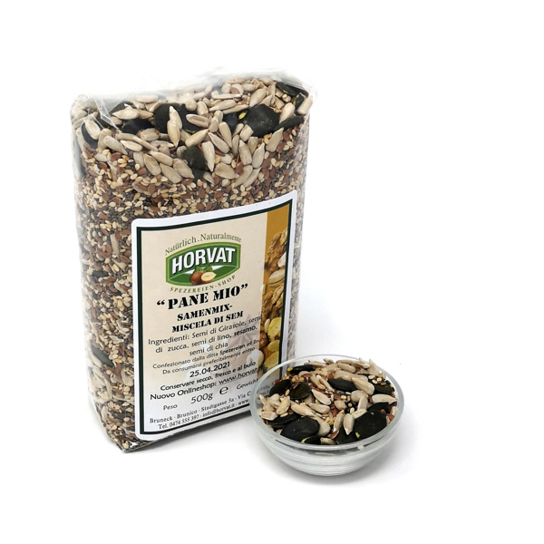 'Pane mio' Miscela di semi Horvat Miscela di semi per aggiungere al pane, muesli o l'insalata, Ingredienti: Semi di girasole, semi di zucca, sesamo, semi di lino, semi di chia 9,88 €/kg Dimensione: 400 g Prezzo: 3,95 € Aggiungi al carrello continua lo shopping condividi su: