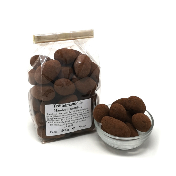 Mandorle tartufate Ingredienti: 68% cioccolata di latte (zucchero, polvere di latte intero, pasta di cacao, burro di cacao, siero di latte, amulsionante: lecitina di soia, aroma,) 29% Mandorle, 2% polvere di cacao, olio di palma. 24,50 €/kg Dimensione: 200 g Prezzo: 4,90 € Aggiungi al carrello continua lo shopping condividi su: