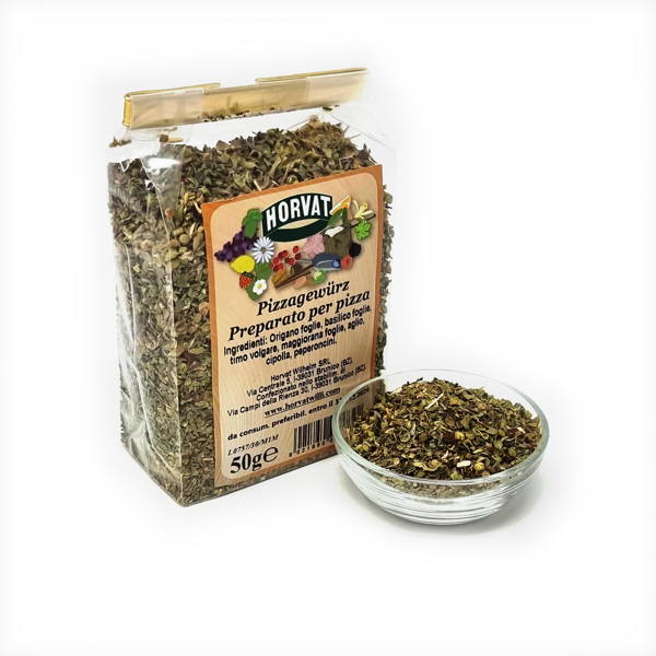 Preparato per pizza (senza sale) Horvat -senza sale- Ingredienti: Origano foglie, basilico foglie, timo volgare, maggiorana foglie, aglio, cipolla, peperoncini 55,00 €/kg Dimensione: 50 g Prezzo: 2,75 € Aggiungi al carrello continua lo shopping condividi su: