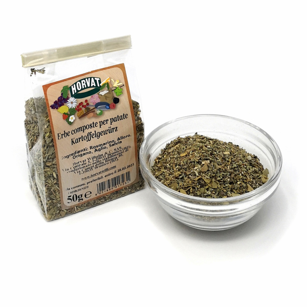 Spezie per patate-Horvat(senza sale) Ingredienti: Rosmarino, Alloro, Origano, Aglio, Salvia 59,00 €/kg Dimensione: 50 g Prezzo: 2,95 € Aggiungi al carrello continua lo shopping condividi su:
