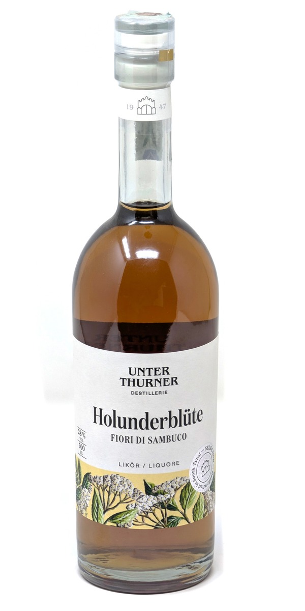 Liquore ai fiori di sambuco Unterthurner è una specialità aromatica ottenuta da fiori di sambuco selezionati, con 28 % vol. di alcool. Dal gusto floreale ed equilibrato, ideale come digestivo, leggermente fresco o per arricchire dessert.