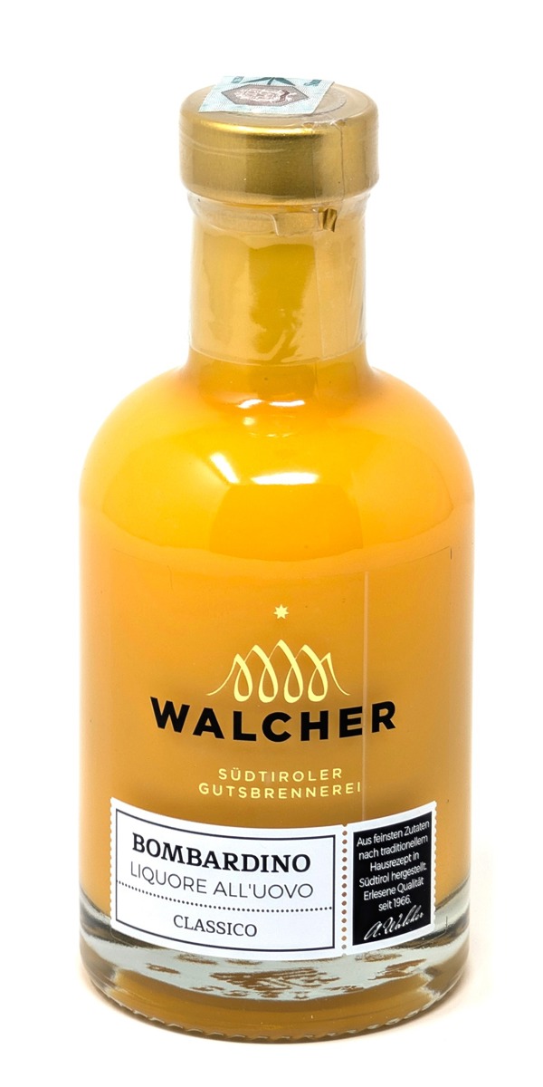 Il Bombardino Walcher è un liquore cremoso a base di uova dell’Alto Adige, arricchito con rum e spezie selezionate. Morbido e avvolgente, si gusta tradizionalmente caldo, soprattutto nei mesi invernali.