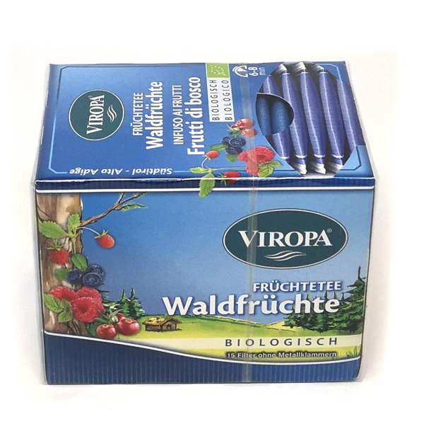 Frutti di bosco - BIO Viropa Ingredienti: fiori di ibisco, mele, rosa canina, bacche di sambuca, aroma naturale, scorze d'arance, radice di cicoria, mirtilli, ribes nero, foglie di lampone, foglie di fragola. Dimensione: 15 Filtri Prezzo: 3,49 € Aggiungi al carrello continua lo shopping condividi su:
