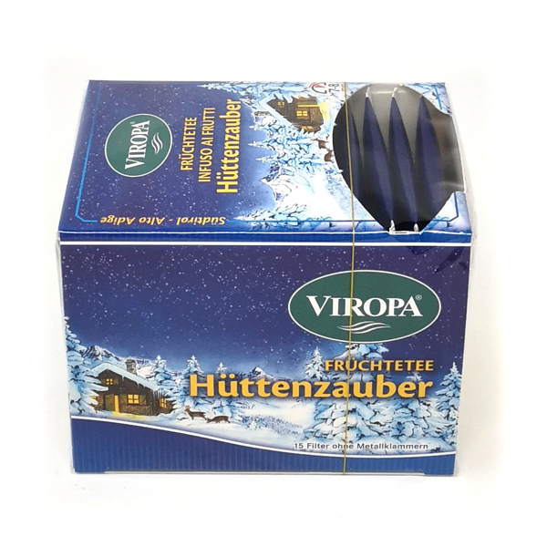 Hüttenzauber con cannellaViropa Ingredienti: fiori di ibisco, cannella, mela, arancia, chiodi di garofano, aroma; Dimensione: 15 Filtri Prezzo: 3,49 € Aggiungi al carrello continua lo shopping condividi su:
