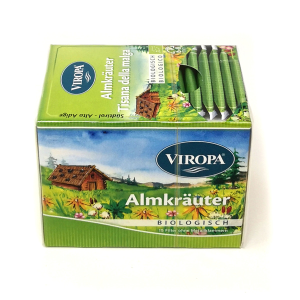 Tisana della malga-BIO Viropa IT-BIO-013 Ingredienti:Menta, camomilla, melissa, achillea(millefoglie), alchemilla, eufrasia, timo Dimensione: 15 Filtri Prezzo: 3,49 € Aggiungi al carrello continua lo shopping condividi su: