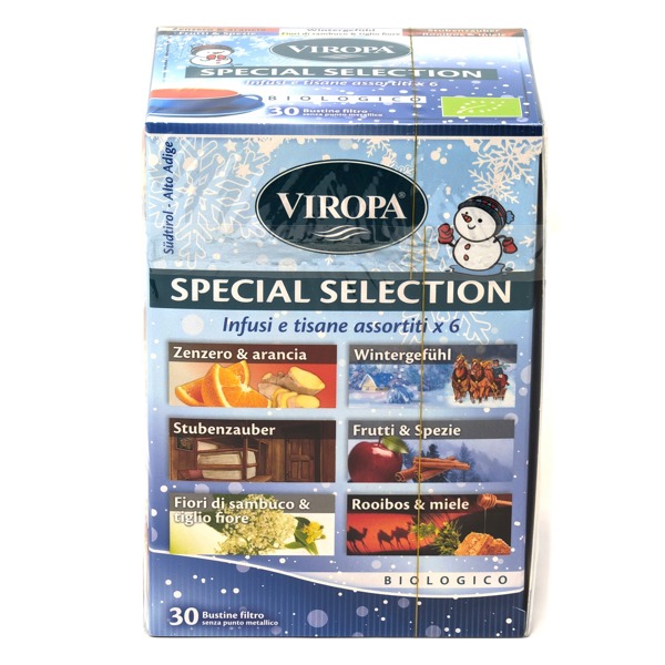 Selezione biologica invernale dell’Alto Adige composta da sei diverse tisane e infusi, pensati per accompagnare con gusto la stagione fredda. La confezione unisce note fruttate, speziate e balsamiche in una raccolta varia e armoniosa.