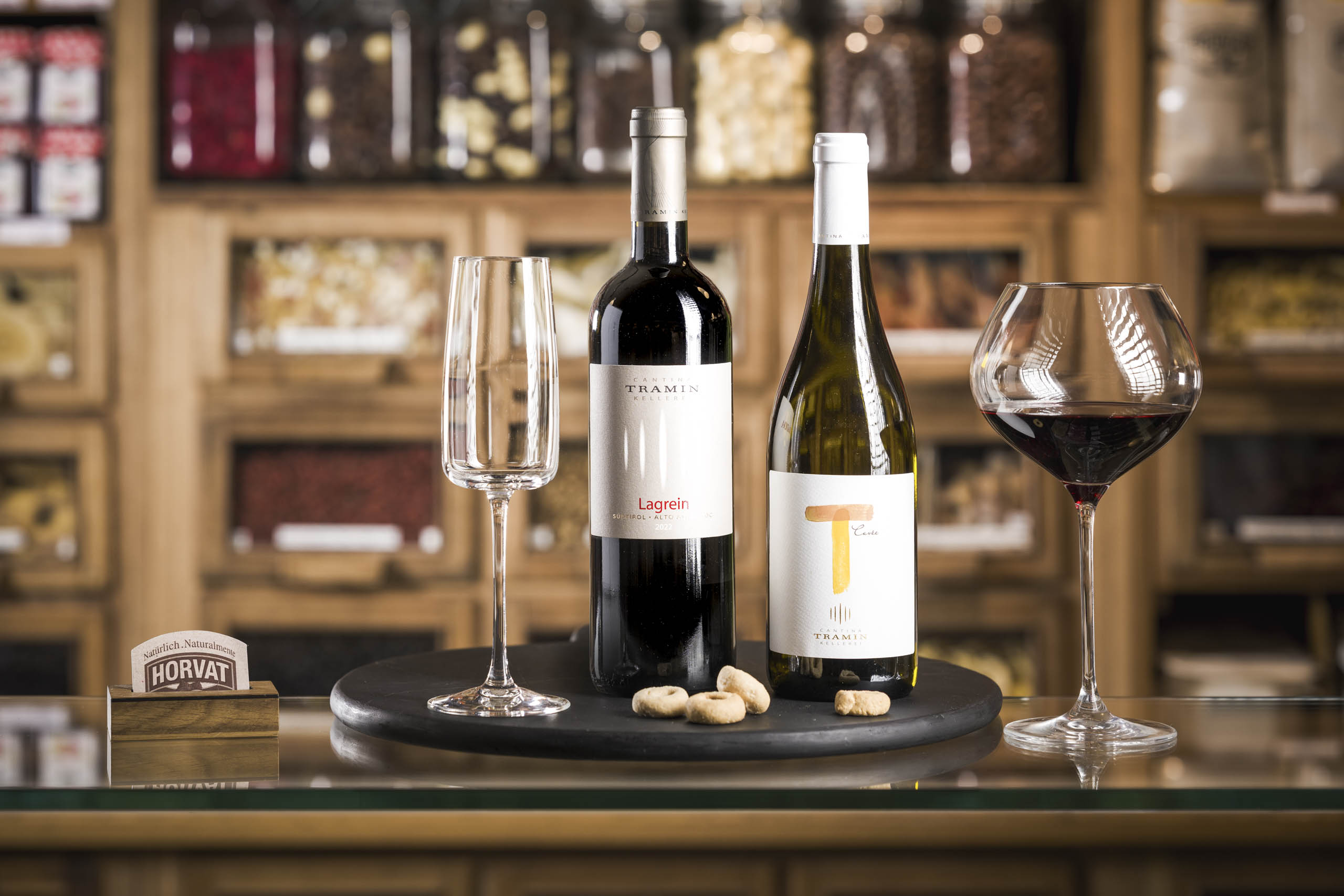 - Lagrein: Il Lagrein è un vino asciutto, dal colore rosso granata scuro, ha un sapore forte e pastoso ed ha un lieve sentore di violetta.